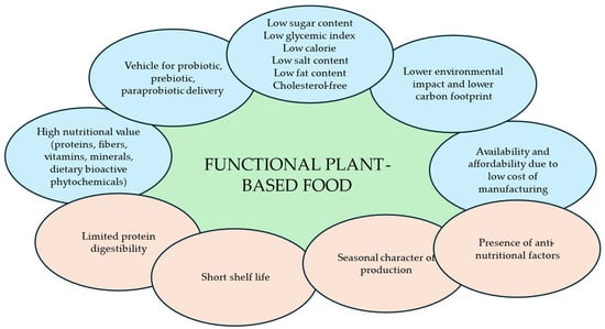 Plant-based functional food products are lactose-free, and therefore the occurrence of allergic reactions is limited. The sugar content is low, the salt content is low, the fat content is usually very low, and they are cholesterol-free. Moreover, the glycemic index is low. The metabolic profile of such food is advantageous for both healthy individuals in the prevention of atherosclerotic and metabolic diseases and for sick people (i.e., obese, diabetic, hypertensive, patients with cardiovascular diseases). This beneficial and healthy profile gives additional advantages over the most popular functional food—dairy products [11].