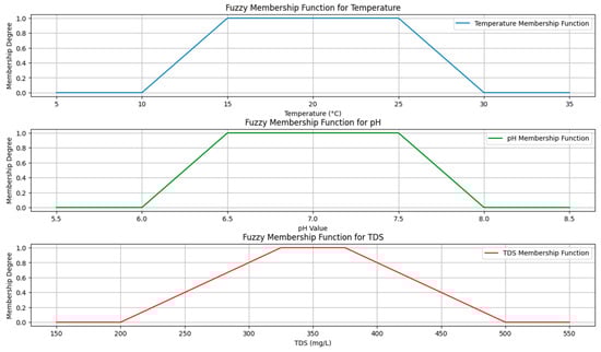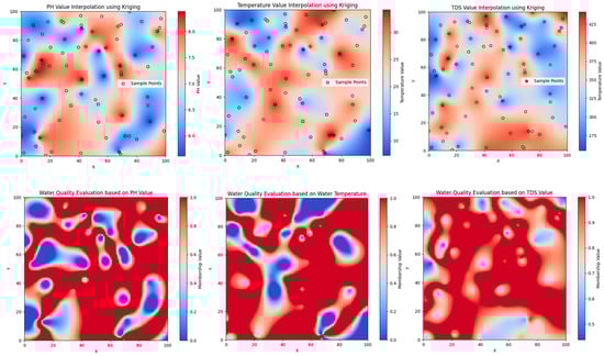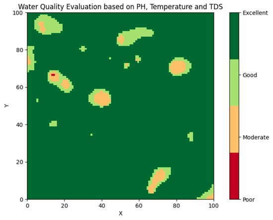 Based on the results of the pH, water temperature, and TDS membership functions, the distribution of water quality information evaluation within the entire fishing area can be clearly obtained (Figure 14).