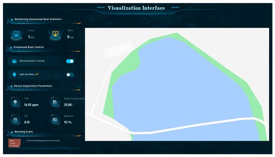 Water quality monitoring system tests show that the unmanned boat can work stably during 5 to 10 s of normal navigation. The parameter accuracy of the industrial control board, the NodeMCU development board, and the sensor module meets the water quality monitoring requirements. Specifically, the measurement error of the water temperature sensor is within ±0.5 °C, the measurement error of the pH sensor is within ±0.1 pH, and the measurement error of the TDS sensor is within ±1%. The developed cloud terminal real-time monitoring system works stably and is able to return real-time online data from sensors, such as pH, temperature, and dissolved oxygen of the water body, realizing real-time data visualization. This allows farmers to keep abreast of the water quality conditions in the aquaculture area and take timely measures to avoid the impact of water quality problems on aquaculture animals.