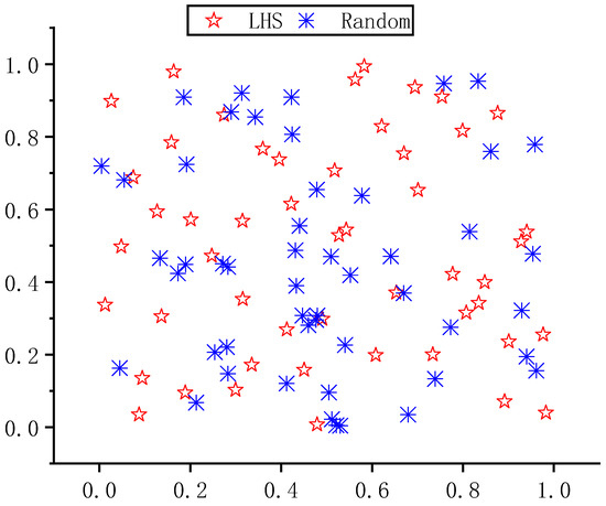 The original ant and ant positions are initialized by randomization, which may lead to the initial position distribution not being uniform enough, which will reduce the diversity of positions and make the algorithm face high uncertainty. Latin hypercube sampling [35] is a sampling technique commonly used for global optimization, which is particularly suitable for uniform sampling in high-dimensional space. As shown in Figure 5, the problem of uneven sample distribution, which is possible during random initialization, can be solved. The uniform stratification of Latin hypercubic sampling can improve the randomness of its distribution, effectively improving the searchability of the algorithm and avoiding falling into the local trap.