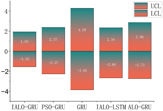 The results are shown in Figure 9 and Figure 10. Due to the minimal threshold range determined by the IALO-GRU model, the early-warning model achieves higher precision and sensitivity in the identification of anomalous data. Further explained, the model will be better able to capture those unusual and more difficult-to-detect abnormal data. This helps to identify the abnormalities in advance, ensuring that the abnormalities are not missed. So that the model can ensure effective detection, it improves the maintenance efficiency of operation and maintenance personnel and can provide strong data support for decision-making.