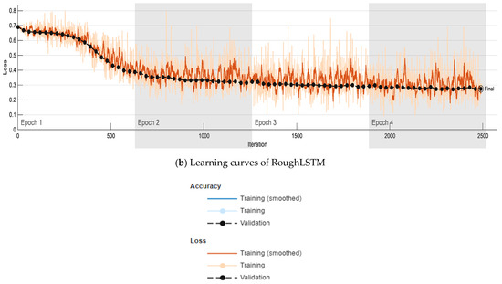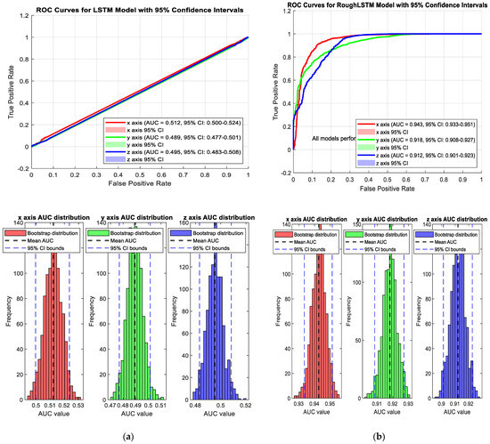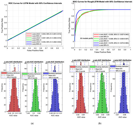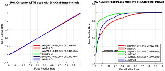 The findings reveal that RoughLSTM outperforms other models in many scenarios. Specifically, RoughLSTM has achieved the highest or second-highest accuracy values in many operations on the z-axis. While the LSTM model generally exhibits the lowest performance, RoughLSTM is found to be competitive with or superior to CNN–LSTM and WaveletLSTMa.