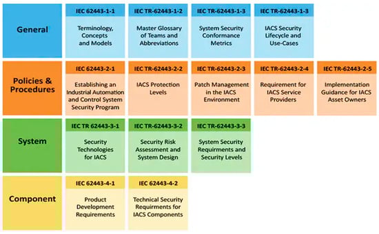 | IEC 62443 [94] | Cybersecurity standards for Industrial Automation and Control Systems (IACS). | Comprehensive protection of industrial automation and control systems against cyber threats. |