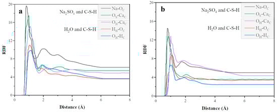 RDF results between sodium sulfate solution and C-S-H. (a) Without CN; (b) with CN.