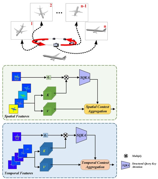 In the basic Sparse Attention mechanism, we introduce a Sparse Structural Attention Network (SSANet) that effectively incorporates rich structural patterns of Query–Key correlation into temporal and spatial contextual feature aggregation. As is shown in Figure 4, the SSANet consists of two steps: structural Query–Key attention and contextual value aggregation.