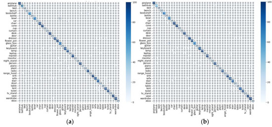 To evaluate the classification performance of the 3D object recognition model, two standard metrics were adopted [20]: the average class accuracy, defined as the mean classification accuracy over all categories, and the average instance accuracy, defined as the overall accuracy across all test samples.