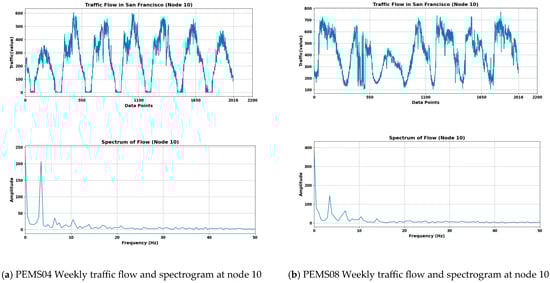 While analyzing data characteristics, it is essential to consider not only its temporal and spatial properties but also its frequency-domain features. For example, in traffic flow data, the magnitude of different frequency components after time-frequency transformation represents the signal’s energy at various frequencies, while the frequency corresponding to the maximum magnitude indicates the primary traffic cycle. In signal processing and time series analysis, time-domain and frequency-domain methods each have their strengths and limitations. Combining both approaches leverages their complementary advantages, enhancing signal analysis and feature extraction. This integration enables a more comprehensive examination of signals across both time and frequency dimensions, overcoming the limitations of a single analysis method.