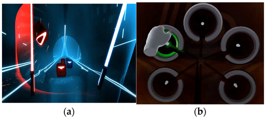 IVR screen display: (a) Beat Saber, (b) Litesport.