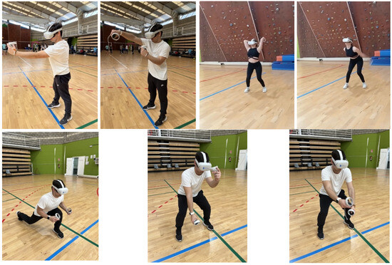Throw accuracy can be defined as the extent to which an object reaches its intended target with the minimum possible deviation [1]. The purpose of throwing is to impact the environment through an impact with a moving object. We can say that the manipulative motor competence of throwing is a typically human motor task that differentiates us from other members of the zoological scale. Speed, distance and throwing accuracy are the three functional aspects that have been the most studied in terms of the motor competence of handling mobiles. These three factors have the common characteristic of being easily quantifiable [2]. Among the factors that influence the quality of throwing accuracy, we can observe the following: (a) the technical ability of the thrower has an impact on throwing [3]; (b) environmental conditions (wind and humidity) can significantly alter the trajectory of an object [4]; (c) the characteristics of the object (the design and physical properties of the object) affect its behavior in the air [5]; (d) physical strength and neuromuscular coordination play an important role in the ability to make accurate throws [6]; (e) experience allows athletes to anticipate and adapt to variations in throwing conditions [7]; and (f) psychological aspects can also have an impact on throwing. The ability to handle pressure and maintain concentration is crucial for accuracy in competitive situations [8,9,10]. In recent years, the advancements in ICT and the emergence of immersive virtual reality (IVR) have brought about profound changes in different areas of our lives [11]. According to Miguélez-Juan et al. [12], we can define IVR as a reality that allows an individual to immerse themselves and project real movements in multidimensional scenarios generated through computer systems using visors or glasses and other devices that capture the position and rotation of the body. By immersing users in a virtual environment, situations can be simulated in a controlled space, allowing them to practice and perfect techniques without the limitations of the real world [13]. This type of training offers several advantages: 1. Repeating physical tasks in a safe and pressure-free environment, which can help build confidence [10]. 2. Analyzing and adjusting technical aspects in real time, which facilitates error correction and continuous improvement. 3. Instant feedback provided by virtual reality, which is also invaluable.