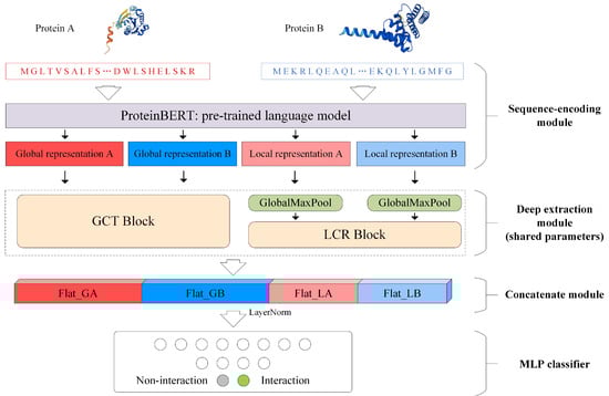 Proteins play a core role within organisms. They participate in numerous important biological processes in complex biological environments and are a crucial cornerstone of biomolecules. Proteins perform a variety of functions, including facilitating reactions [1,2], assisting in signal transduction [3], regulating biological activities [4], and transporting key substances [5,6]. These functions manifest externally as interactions between two or more proteins, known as protein–protein interactions (PPIs). Research on PPIs is instrumental in revealing the operational mechanisms within organisms, understanding disease mechanisms, and developing new drugs. Initially, researchers verified the interactions between proteins by traditional experimental methods, such as yeast two-hybrid [7,8] and co-immunoprecipitation [9]. These methods can accurately detect interactions between proteins. However, long experimental cycles, a low efficiency, and experimental failure risks are major drawbacks of traditional methods. These factors prompted some researchers to seek more efficient and reliable alternative methods.
