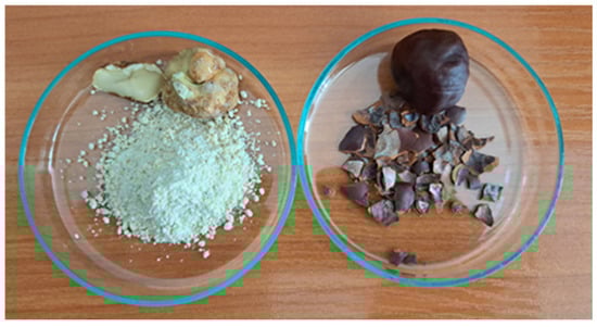 The seeds of horse chestnut were harvested from trees located in the South Park in Sofia, Bulgaria during the month of October. They were cleaned and dried at room temperature for several days and stored in a dry, cool, and dark place until further processing. The seeds were opened, and their shell seed (SS) and endosperm (peeled seeds PS) parts were separated and ground (Scheme 1).