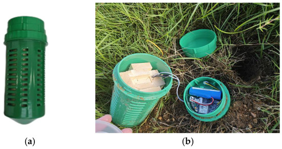 Intelligent termite monitoring systems predominantly utilize sensors, wireless communication technologies, and data processing algorithms [14,20,21]. The collected data are then transmitted via wireless communication technologies to a cloud server for processing and analysis [22]. Data processing algorithms subsequently generate real-time early warning messages, enabling users to take timely preventive and control measures [20]. Two primary sensing methods are commonly employed: the first leverages termites’ natural feeding behavior on bait materials embedded with internal circuits. When these circuits are damaged, it indicates termite activity, facilitating remote monitoring. The second method involves measuring fluctuations in ambient carbon dioxide (CO2) concentration, where an increase suggests the presence of nearby termites [21,23].