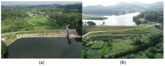 Schematic layout of termite monitoring sites in Suokoutan Reservoir. (a) Upstream slope; (b) downstream slope.