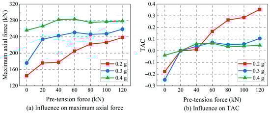 The influence of the pre-tension force on the maximum axial force and TAC.