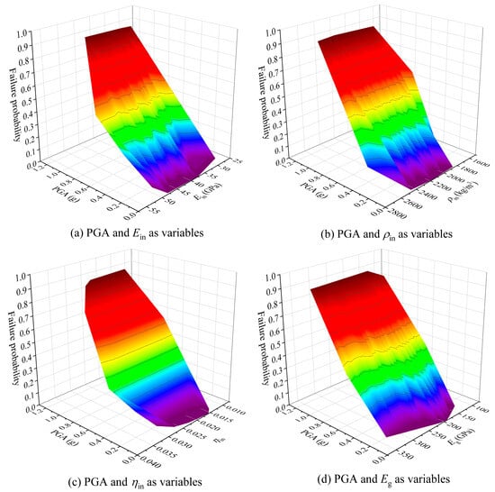 If we would like to investigate the combined effects of PGA and other material parameters, the seismic vulnerability surface also can be acquired. Using the multi-variable-input AdaBoost regressor, the data points of failure probability versus PGA and other material parameters are plotted or clustered, then fitted by a multi-dimensional surface. Then, the features of the vulnerability surface can be accordingly synthetically analyzed.