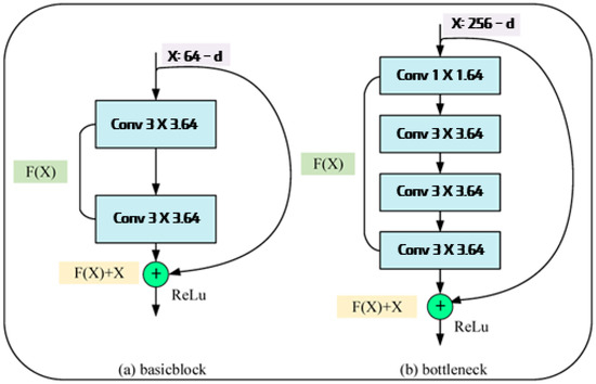 Residual block structure of ResNet algorithms (ResNet-18 and ResNet-34) [16].
