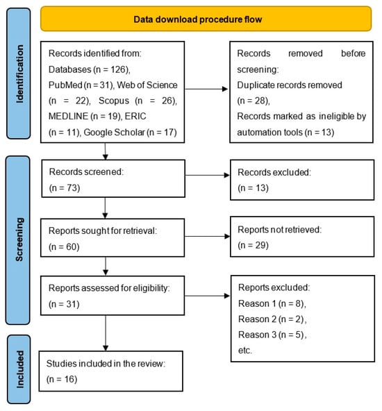 After removing duplicates and screening the articles based on their title, abstract, and other criteria (studies whose primary objective was not motor abilities under the influence of complex training; female basketball players; case reports; conference abstract; sports other than basketball; studies that compared complex training in team sports, etc.), 31 studies remained. Two researchers independently evaluated these 31 studies. Following the final screening, 16 studies met the set criteria and conditions and were included in the systematic review. The procedure for the collection, analysis, and elimination of the papers is shown in Figure 1.