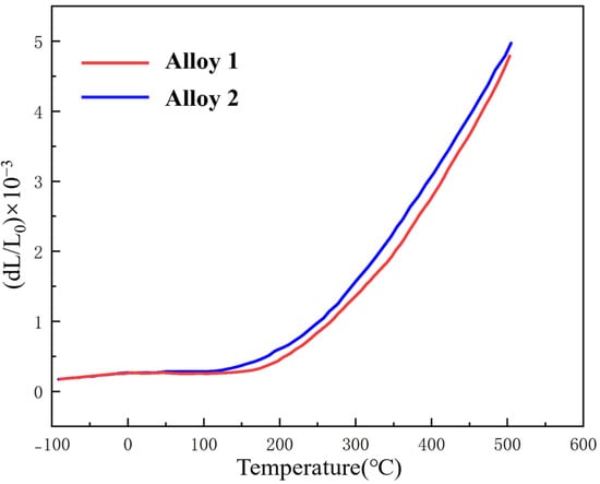 Thermal expansion curves of alloy 1 and alloy 2.