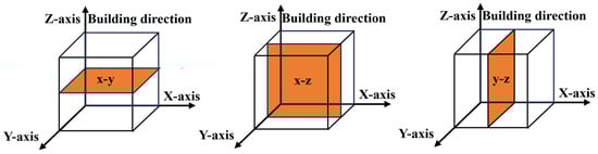 The cross-section shown in Figure 4 was selected as the observation plane to study the microstructure distribution of the invar alloy specimen in different build directions. The metallurgical samples were cut out by electric spark-cutting equipment and then ground, polished, and etched in turn. The metallurgical samples were etched with FeCl3 ethanol solution (30%), and the etching time was 10–15 s. Subsequently, the resulting microstructures were analyzed using an Axio-VertA1MAT optical microscope (Karl Zeiss, Jena, Germany). The JSM-7100F (JEOL, Tokyo, Japan) scanning electron microscope (SEM), equipped with energy dispersive spectrometer (EDS, JEOL, Tokyo, Japan) and electron backscatter diffraction (EBSD, JEOL, Tokyo, Japan), was used for observing the microscopic morphology. For EBSD examination, specimens were prepared by electrochemical polishing with a solution of 10% perchloric acid and 90% ethanol (v/v%). The element distribution and precipitated phase composition of the sample were analyzed with the JXA-8530 (JEOL, Tokyo, Japan) electron probe microanalyzer (EPMA).