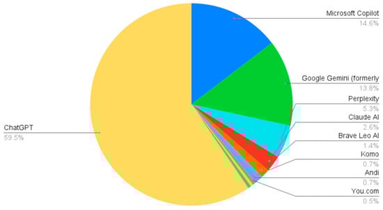 - FirstPageSage. Top Generative AI Chatbots by Market Share—December 2024. Available online: https://www.firstpagesage.com (accessed on 10 August 2024).
