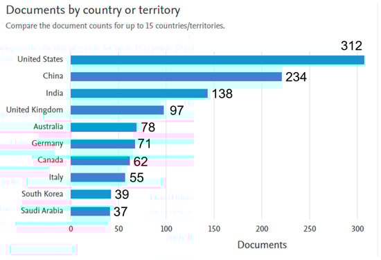 Before analysis, the collected dataset underwent several preprocessing steps to enhance data quality and ensure the accuracy of the analysis. Since keyword data in academic articles are often entered inconsistently—due to variations in terminology, formatting, and use of subscripts—direct use of such data could introduce errors []. To mitigate these issues, the keyword data were carefully refined. The SCOPUS “analyse search results” function was then employed to assess the number of publications from key countries and research institutions in the field of GAI and security. This evaluation aimed to identify research trends and highlight prominent national and international institutions focused on this area. To systematically retrieve the relevant literature, the dataset was collected using a structured search query applied to the SCOPUS database. The exact query used was as follows: (“generative AI” OR “ChatGPT” OR “GPT-3” OR “large language model” OR “LLM”) AND (“security” OR “cybersecurity” OR “privacy” OR “threat detection” OR “adversarial attack”). This formulation was designed to encompass a wide spectrum of research on generative AI and security-related topics, ensuring broad coverage while maintaining relevance to the study. The search period was set from June 2022 to June 2024, reflecting the rapid advancements in generative AI security research. Although GPT-4, GPT-4o, and DeepSeek are notable advancements in LLM development, they were not explicitly included in the search terms due to several reasons, including publication timeline constraints: GPT-4 was released in March 2023, while GPT-4o and DeepSeek were introduced in May 2024. Given the time required for peer review and indexing, the presence of peer-reviewed articles on these models in SCOPUS at the time of data collection was limited. Limited representation in SCOPUS-indexed literature: While these models have been extensively discussed in industry reports and preprint repositories (e.g., arXiv), their inclusion in peer-reviewed SCOPUS-indexed journals and conferences remains low. Generalized search strategy: Instead of focusing on specific model names, the search query used broader terms such as “LLM” and “large language model”, ensuring that relevant studies on newer models were included if indexed under general terminology.