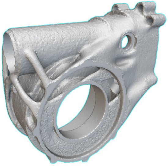 Firstly, calculations with a lower-resolution mesh are performed. The mass is minimized within the limits resulting from the maximum stresses. The results show that it is possible to reduce the mass of the part to 25% of the mass of the initial design space. Then, optimization on a higher-resolution mesh is performed. To reduce calculation time, settings of the optimization are changed to maximize the stiffness of the structure with the imposed mass reduction condition of 25% of the mass of the design space. The body material is EN AW-7075. The optimization result is shown in Figure 8. Calculations are performed using the SIMP method [] implemented in nTopology software [].