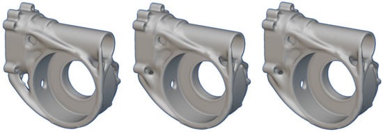 The analysis shows that the volumes of the resulting components overlap by 95.5% for the comparison of results 1 and 2 and by 99.6% for the comparison of results 2 and 3. It can be concluded that, for models similar to those presented in this work, it is sufficient to use four load states, differing in the radial moment with a variable direction every 90∘. It should be emphasized, however, that the results of topological optimization may vary depending on, for example, the design space and the size of the mesh, so it is a process in which it is worth testing many solutions using the trial and error method. Additionally, the solutions found are of a local optimum nature. Adding manufacturing constraints allows for obtaining a better result from the point of view of the objective function.