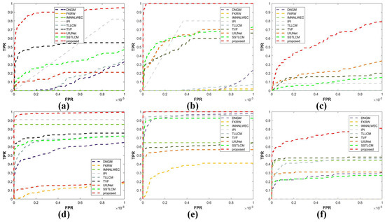 (a–f) ROC curves of 9 methods in Seq.1–Seq.6.