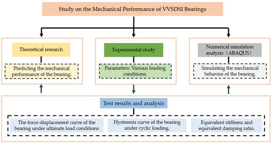 - The load-displacement hysteresis curve of the VVSDSI bearing exhibits typical asymmetry. Studies have shown that increasing the preloading displacement results in a fuller hysteresis curve, enhancing the energy dissipation capacity of the bearing. In contrast, increasing the load amplitude reduces the fullness of the hysteresis curve and exacerbates its asymmetry. During the seismic isolation phase, the preloading displacement is positively correlated with the equivalent stiffness and damping ratio, while the load amplitude shows a negative correlation with these parameters.