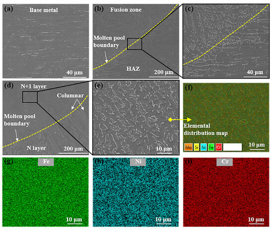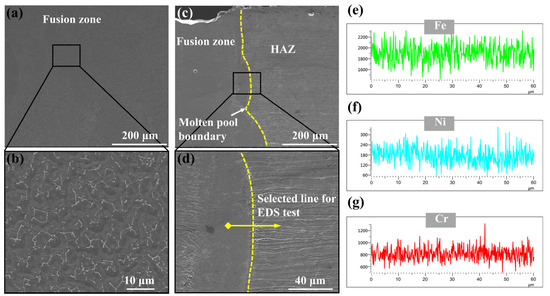 - Compared with GTAW, there are much bigger equiaxed grain regions located in the FZs of the laser-welded samples. Fewer ferrites penetrated into the boundary of the austenite phase and the homogeneous elemental distribution in the HAZ, indicating few elemental segregations.