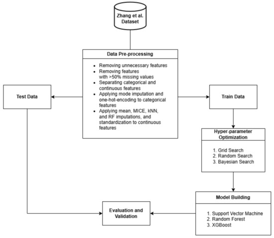 For the comparisons of this study, 36 models were built with different pre-processing approaches and different hyper-parameter optimization methods. Each model was given the name of its algorithm and imputation technique. For example, the SVM-based model with mean imputation is referred to as SVM (Mean).