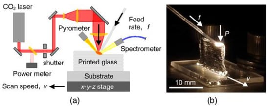 - Luo, J.; Pan, H.; Kinzel, E.C. Additive Manufacturing of Glass. J. Manuf. Sci. Eng. 2014, 136, 4028531. [Google Scholar] [CrossRef]