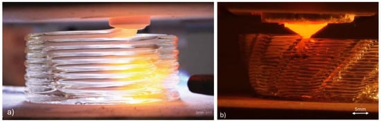 - Fröhlich, F.; Hildebrand, J.; Bergmann, J.P. Additive Manufacturing with Borosilicate Glass and Soda-Lime Glass. In Proceedings of the 2nd International Conference on Advanced Joining Processes (AJP 2021), Sintra, Portugal, 21–22 October 2021; da Silva, L.F.M., Martins, P.A.F., Reisgen, U., Eds.; Springer International Publishing: Cham, Switzerland, 2022; pp. 151–164. [Google Scholar] [CrossRef]