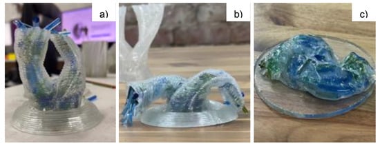 While it is desirable to take advantage of well-developed polymer printing and lower printing temperatures, reliance on exotic materials severely limits utility compared to silicate glasses. The explored low-temperature glasses have had limited application outside of optics and semiconductors. For social impact, such as in art and architecture, glass AM must find use outside of an engineering environment. Therefore, material availability and safety are concerns. There is not a significant waste stream to be utilised as with silicate glasses. Also, in particular, chalcogenide glasses have been observed to produce hazardous fumes while printing, requiring a fume hood enclosing the printing area [49]. Examples of models produced by EAM with chalcogenide glass are presented in Figure 12.