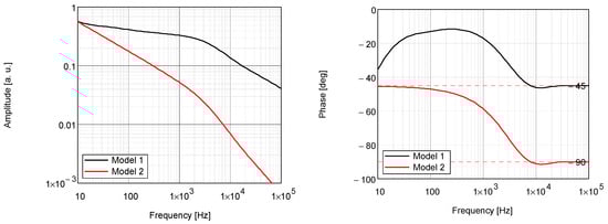 Theoretical PTR amplitude and phase frequency characteristics calculated in Model 1 and Model 2 of the PTR signal.