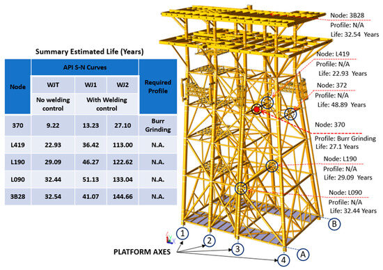 - The spectral fatigue analysis provides insights into the behavior of tubular joints under different S–N curves. The results indicate that the fatigue life of all tubular joints is reached within the expected operational period.
