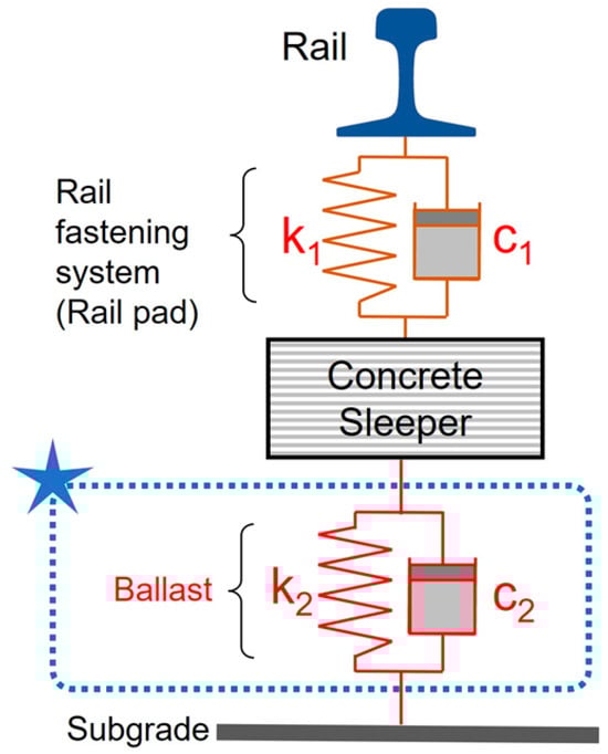 - This study treated the spring stiffness of the ballast as a variable and confirmed the natural frequency of the track through finite element analysis, corresponding to changes in this parameter. The finite element analysis results showed a maximum deviation of approximately 0.91% compared to the field measurement values. This close agreement validates the use of the finite element model for simulating the track behavior under varying ballast support conditions. Therefore, the spring stiffness of the ballast and finite element modeling can be used to predict damage to gravel-ballasted track sleepers.