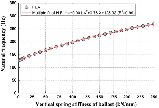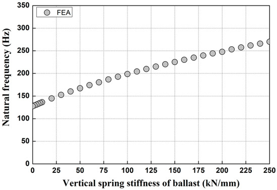The results of the natural frequency analysis, based on variations in ballast spring stiffness, are presented in Figure 13.