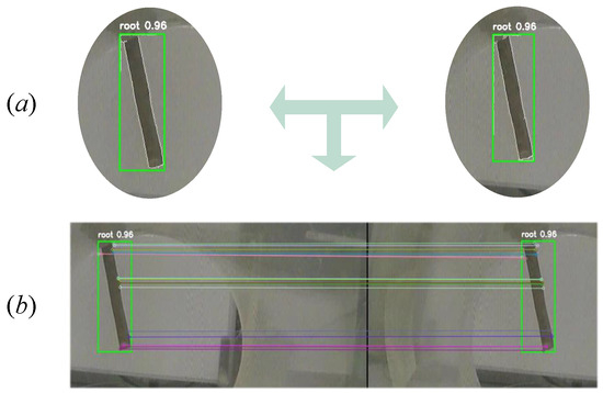Figure 11 represents the ORB feature point matching of two images taken at different moments. The RANSAC algorithm is used to compute the fundamental matrix, and the wrong matching points are automatically eliminated. Fundamental matrix is solved as Equation (20).