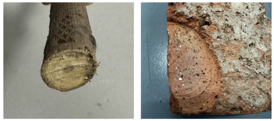 Figure 15 illustrates the cross-sections of the cut tree root and the sanded brick surface. The cross-section of the cut tree root is neat, and the thickness of the polished brick surface is reduced by 1 cm. This demonstrates that the current end effector can complete the cutting and grinding tasks in the sewer. However, in the grinding experiment, a deviation was observed when the arm made contact with the bricks surface, potentially leading to unintended contact with the pipe wall.