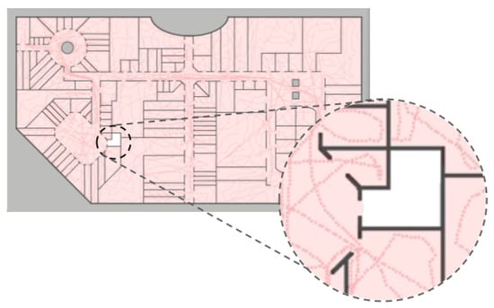 The virtual environment used in MARS-SLAM simulations is generated from a grayscale PNG image, with dimensions of 900 by 1600 pixels. Each pixel of the image corresponds to a unique coordinate in the simulated environment, representing a position on the map that the robot will explore. The image is loaded and processed by the simulator, which interprets the different grayscale values to define the navigability of the environment. White pixels (255, 255, 255) indicate free areas, where the robot can move without restrictions, while black pixels (0, 0, 0) represent obstacles on the map, marking regions where the robot cannot enter. Among the various mapping techniques, metric maps stand out for their detailed and precise nature [36]. Metric maps provide a detailed representation of the environment’s geometry, describing the shape, dimensions, and arrangement of objects.