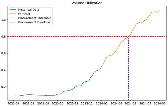 Cloud demand forecasting (CDF) uses historical data and usage patterns to enable enterprises to accurately predict future resource demands and forecast the time when resource pool utilization reaches procurement thresholds, thus optimizing procurement and allocation strategies and enabling rational procurement before resource depletion [3]. As shown in Figure 1, this process helps to ensure timely procurement before resource depletion. Furthermore, CDF provides data-driven decision-making support, empowering enterprises to make more informed decisions when navigating complex vendor pricing models and resource options. Studies [4] suggest that the implementation of precise cloud demand forecasting strategies can significantly improve resource utilization and simultaneously ensure business performance and reliability.
