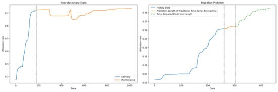 In CDF, the few-shot problem could be more acute. CDF requires forecasting future trend changes over periods of 2 to 4 months to allow sufficient time for resource procurement. However, traditional time series forecasting algorithms require extensive historical data, of more than 300 days, to achieve a reliable generalization to achieve a prediction length of 60 days. In practice, resource pools during the resource delivery phase often contain merely 30 to 60 days of data. This significant shortfall exacerbates the challenge of limited prediction length and overfitting. Consequently, enhancing prediction accuracy under these constraints through few-shot models or by integrating data augmentation becomes essential in CDF.