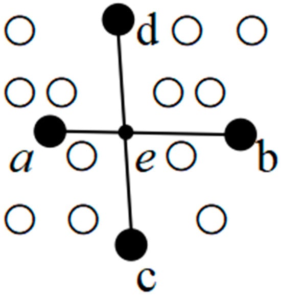 The 4PCS algorithm is a popular point cloud coarse alignment algorithm that performs a full-range search of a point cloud dataset under specified constraints. As shown in Figure 5, the basic principle of the 4PCS algorithm is as follows: randomly select 4 points (a, b, c, d) that are coplanar but not collinear in the source point cloud set P to form a point set B, where the line from ab intersects the line from cd at point e. Then, select 4 pairs of coplanar but not collinear points that are congruent with point set B from the target point cloud set Q and compute the optimal transformation matrix T.