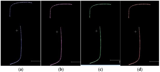 The 3D point cloud of the rail obtained by 3D line structured light needs to be aligned with the complete 3D point cloud of the rail before calculating the wear of the rail. Point cloud alignment is the data processing process of adjusting two pieces of point clouds at different positions in the same space to the same position through coordinate transformation. Since the alignment effect cannot be optimized at one time, it is usually divided into two stages: coarse alignment and fine alignment []. Coarse alignment allows the two pieces of point clouds at the initial spatial position to be roughly aligned by coordinate transformation, while fine alignment aims to achieve further alignment on the basis of the coarse alignment [] in order to achieve minimization of the alignment error.