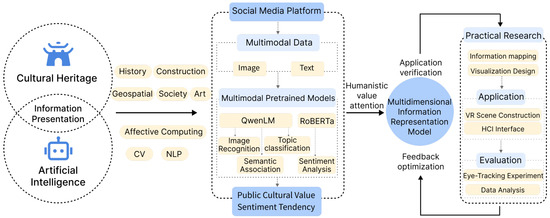 In the field of cultural heritage information presentation, user-generated content (UGC) on social media platforms provides a rich source of emotional feedback. However, accurately extracting user sentiment and effectively presenting cultural information remain challenging due to the unstructured nature of the data, modality differences, and semantic ambiguities. The traditional text-based sentiment analysis methods struggle to capture the deep semantic associations within multimodal data, while purely computer-vision-based approaches fail to interpret users’ cognitive perceptions of cultural content.
