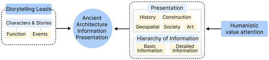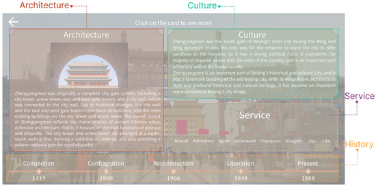 Figure 7. However, due to the extensive volume of historical information and its typical presentation in chronological order, the historical dimension is displayed using a timeline format instead of a traditional text–image combination.