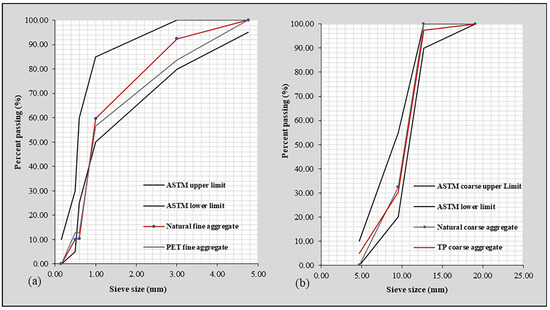 Particle size curves: (a) fine aggregate; (b) coarse aggregate.