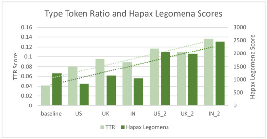3.4.3. Type–Token Ratio and Hapax Legomena