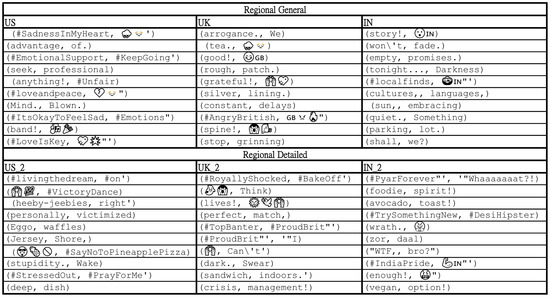 Furthermore, the pointwise mutual information (PMI) scores for co-occurring word pairs highlighted significant associations unique to each region. These findings underscore the influence of regional language variations on emotional expression, as they show how different cultural and linguistic factors shape the way emotions are conveyed in text. For instance, the use of region-specific idioms, slang, and culturally relevant terms all contribute to the nuanced expression of emotions, which must be accounted for when developing emotion detection systems.